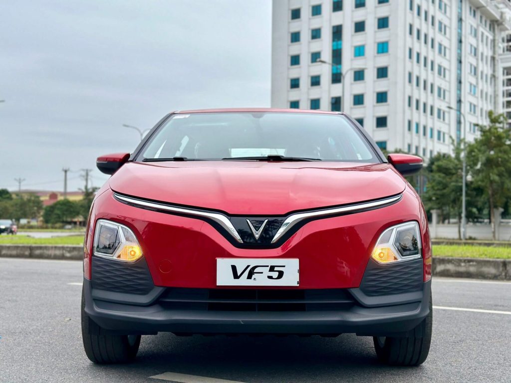 Phần đầu xe của VF 5 được thiết kế theo phong cách hiện đại và có phần tối giản theo phong cách đặc trưng của VinFast. Nắp ca-pô dập nổi cơ bắp, mặt Ca-lăng kín và liền mạch theo đặc trưng của xe điện do không cần làm mát động cơ. Logo VinFast được đặt chính giữa với 2 dải crom trang trí theo hình cánh chim vô cùng quen thuộc với khách hàng.