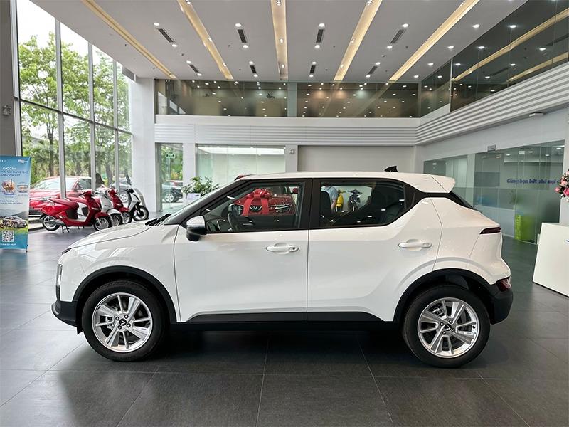 Bên thân xe của VF 5 gây ấn tượng với những chi tiết dập nổi kết hợp với những đường bo tròn. Cột C thiết kế phong cách thể thao với đường viền đen chạy ra sau đuôi, cho xe cảm giác dài hơn, trong khi hốc bánh xe tạo những đường gân cơ bắp. Cổng sạc đặt bố trí bên hông phải của xe, giúp tăng thêm phần thuận tiện trong quá trình sạc pin cho xe.