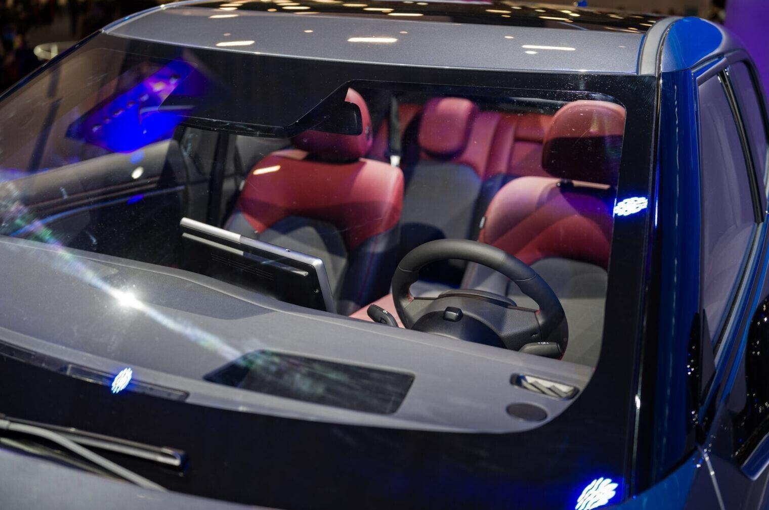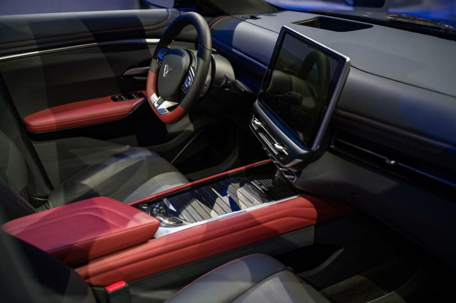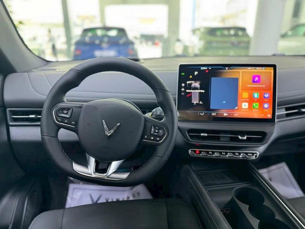 Vô-lăng xe cũng là dạng D-cut thể thao giống như những người anh em cùng nhà, song mang đến cái nhìn sang trọng hơn hẳn nhờ lối phối màu độc đáo. Đồng hồ hiển thị thông tin lái tiếp tục không có mặt trên mẫu SUV điện cỡ C của VinFast.